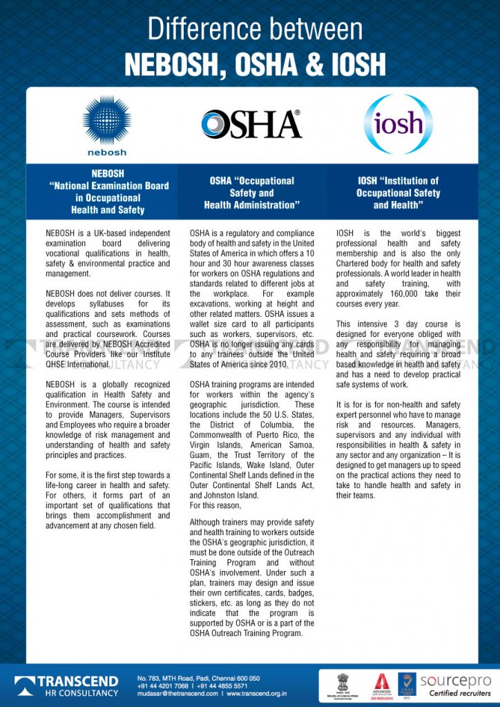 Difference Between NEBOSH-OSHA-IOSH ?